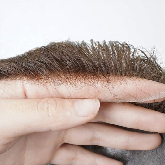 Super Fine Swiss (SFS) Lace is the thinnest and lightest of all mens Hair Systems. The Super Fine Swiss (SFS) base vanishes against your scalp, creating the most authentic hairline possible. Its ultra-light design offers a barely-there feel and stunning realism, though its fragility calls for careful handling—perfect for veteran wearers who know the ropes. Tailor it to your needs: opt for no polyurethane (PU) for a breezy, natural fit, add PU along the sides and back for extra support, or go with a full PU perimeter for enhanced strength. With SFS, you get a custom-crafted look that’s as real as it gets.