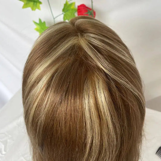 Custom Wigs Full Swiss Lace Human Hair Wig Toupee For Men 10inch Long Toupee Hair Wigs 6# Brown Color with 613 Blonde Hair System 10x8 inch Cap Base Size