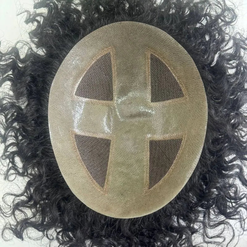 Custom 100% Human Hair Men's Hair Popular Mono Base Lace with PU around Mask Shape Toupee 7x9 Cap Hair System 15mm Loose Curl Hair Pieces 6 Inch