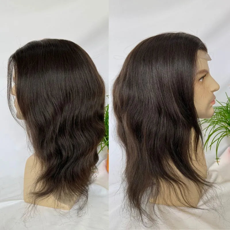 Mens toupee hairpiece is a high-quality and durable wig that is made from 100% remy human hair, which are very soft and smooth. It can be tied up in any direction with headband. The wig is suitable for both short and long hair, although we recommend consulting a hairstylist before cutting or coloring the hair.