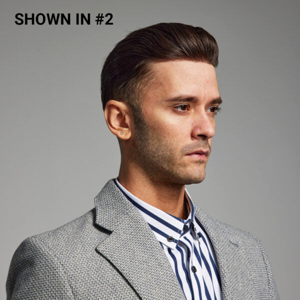 Introducing the Ultra-Thin 0.06mm Thin Skin Hair System, now available in a luxurious density of 130%! With a 0.06mm skin base, this toupee offers a medium to high density for a fuller, more natural look. Each piece features 100% human hair, expertly v-looped to the base for a seamless, knot-free finish. Styling is effortless, and with a wide range of color options, you will find the perfect match for your clients!