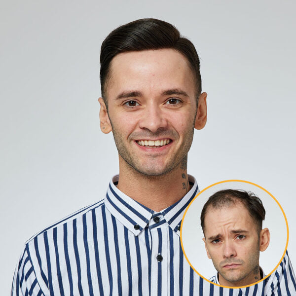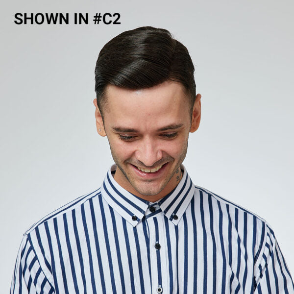 100% human hair, attached in double-split knots, won’t easily come off the base. It blends perfectly with the wearer’s hair, achieving a natural, authentic look.